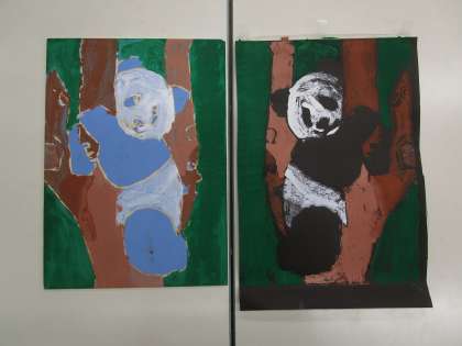 かわいいパンダの版画ができました。