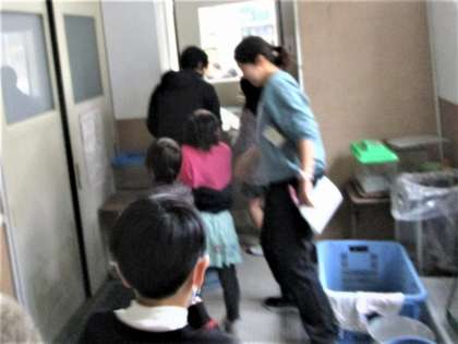 高学年が中心になって、体育館や理科室などを案内していました。