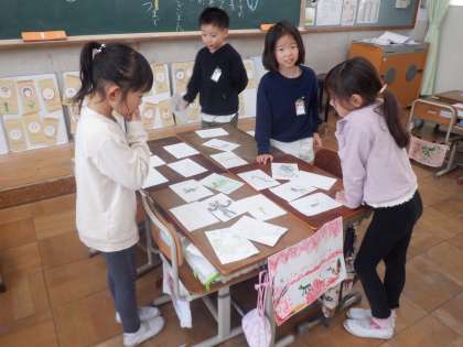 お店の人とお客さんに分かれ,「いらっしゃいませ。」や「〇〇をください。」など、言葉を工夫したり笑顔で伝えたりしながらお店やさんごっこを楽しみました。