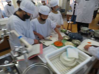包丁で切る作業も、これまでの学びがいきていました。テキパキと作業しながら、ほかにもできることを考えて行動できていました。