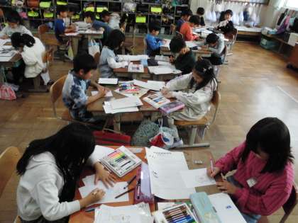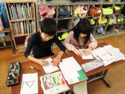 お店屋さんごっこの準備中です。自分たちがしたいお店を選んで選んだお店が一緒の友達とお店を開く準備をしました。とても楽しんで商品を考えたりその絵を描いたり、商品の名前を書いたりしていました。