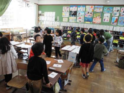 国語科「ものの名まえ」でのおみせやさんさんごっこの様子です。