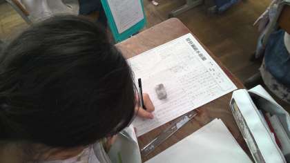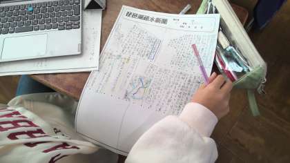 学習したことをふり返って新聞を作っています。みんな集中して頑張っています。