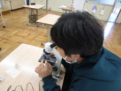 ひょうたん池の水も見ました。透き通った水の中にある植物プランクトンを見つけて、驚いていました。