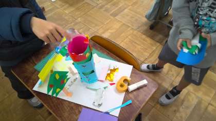 それぞれの想像した世界を白い土台にひろげていきました。