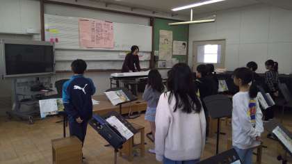 口形に気をつけて歌を歌っています。遠くまで響く声を目指してがんばっています。廊下に聞こえてくる声がとてもきれいでした。