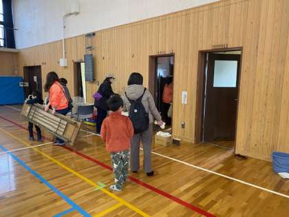 体育館の更衣室にあった備蓄物資を移動した後の、更衣室のロッカー内を掃き掃除や拭き掃除していただきました。