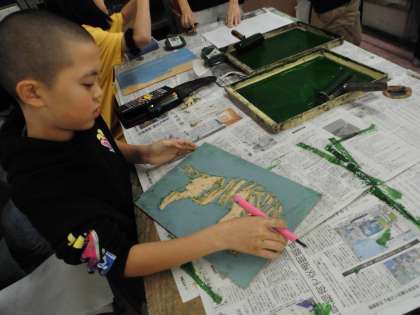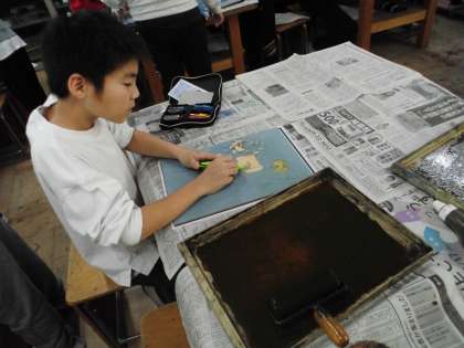 5年 図工 ほり進めて 刷り進めて