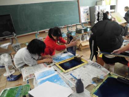 5年 図工 ほり進めて 刷り進めて