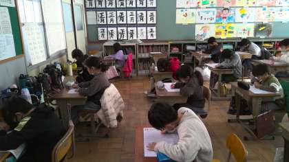 休みに頑張った漢字の復習テストを行いました。