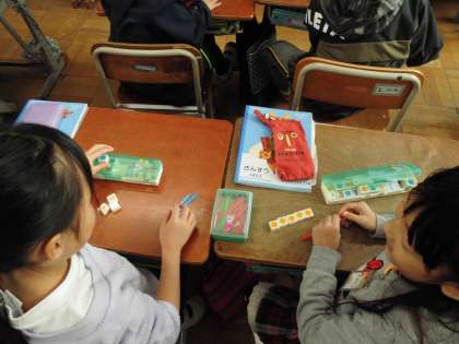 ペアで問題を出し合いました。いった数を並べたり並べた数を言ったりしました。協力しながらしていました。