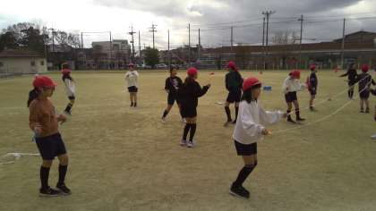 自分の力に合わせて走るペースを考えたり、自分のできるなわとびの技を増やしたりしながら学習を進めています。しっかり体を動かしている子どもたちの様子は元気いっぱい!なわとびで新しい技ができると、「見て!」「2回できた!」と自慢気でした。また、おうちの方にも見てもらいたいです。