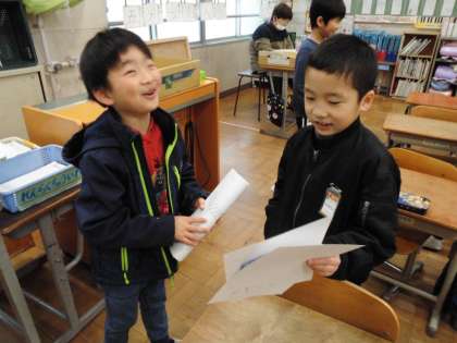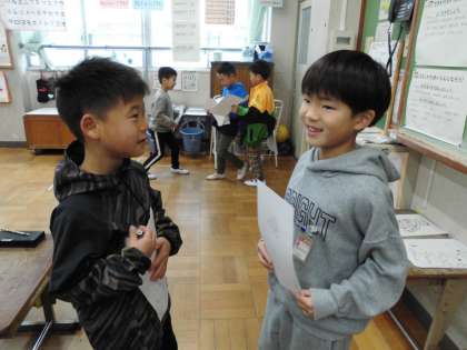クイズの交流をしました。一人ひとり相手を見つけて楽しみました。