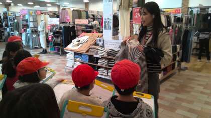 服の並べ方の工夫や生地の使い方を教えてもらったり、働く人の思いを聞いたりしました。