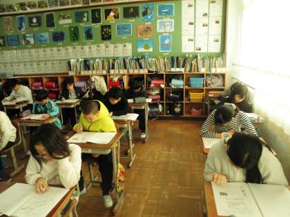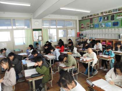 社会と国語を時間いっぱいがんばってテストに取り組んでいました。