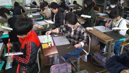 2学期中に彫刻刀での彫りが終わった子どもたちは、「刷る」活動に入っています。初めての一般多色版画に子どもたちは苦戦しつつも、色がきれいにうつると嬉しそうな表情に。完成が楽しみです。