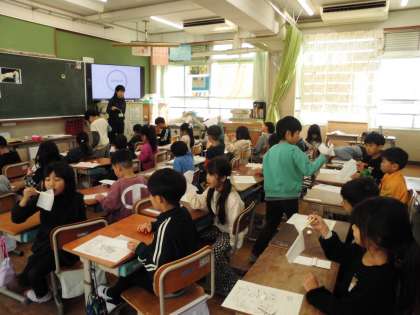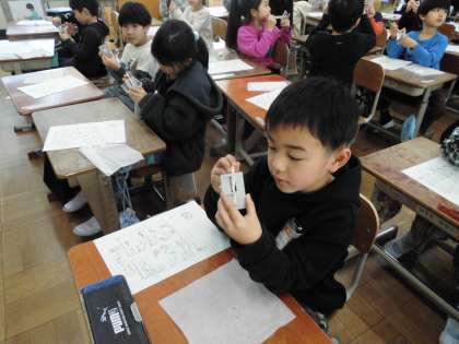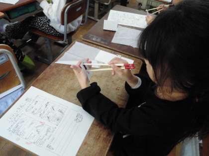 栄養教諭にお箸の持ち方を教わりました。今日、練習カードを持ち帰っています。お箸にさして使います。苦戦している子もいましたので、またお家でもチャレンジしてみてほしいです。