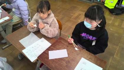 手がつりそうになりながら、一生懸命挑戦していました。