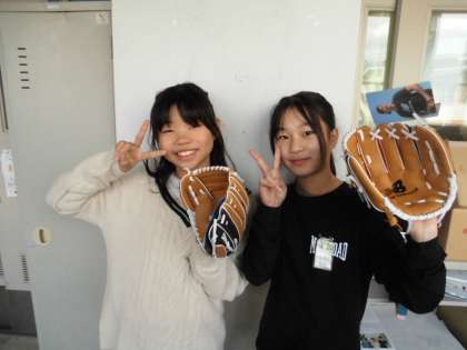 野球をやったことのない子も、つけ方を教えてもらいながら、みんなうれしそうに手を入れていました♪