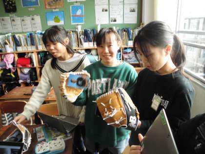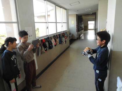 大谷選手のグローブをつけながら本当にうれしそうにしている子ども達。