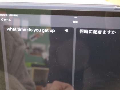 英語と日本語の翻訳アプリを使って、習ったところの文や単語の発音が正しいかを確認しました。