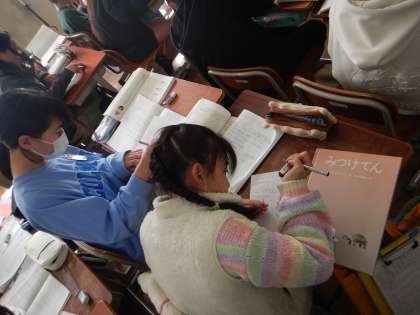 各学年に応じた言葉を使いながら素敵なカードを作っています