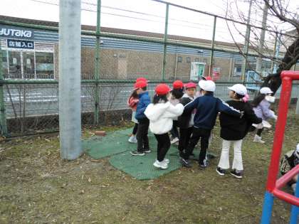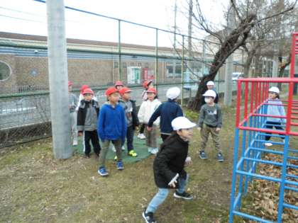 中間休みは、けいどろ、昼休みは、かわりおにと、寒い中をみんな元気に遊びました。昼休みは、雪が舞っていました。みんなで走って、寒さを吹きとばしていました!