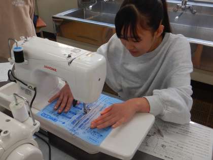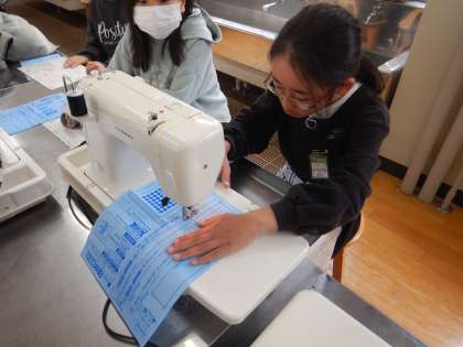 家庭科の学習では、ミシンに挑戦です!