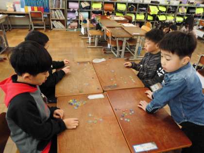 おはじきや坊主めくりなど、はじめてする遊びもありました。友達といっしょに楽しみました。