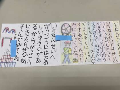 会場準備をした5年生児童から新1年生の子どもたちへメッセージカードが送られました。
