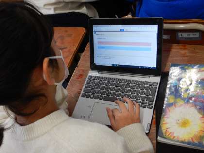 国語の学習では、普段の自分の言葉の使い方で見直すべき点を、みんなに提案する活動をしています。今日は、自身が調査したい事を友達に聞くためにアンケートをつくったり、インターネットで調べたりしました。