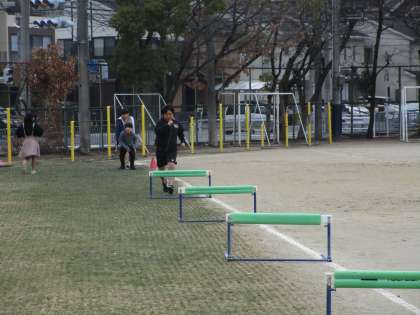 ハードル走を行っています。