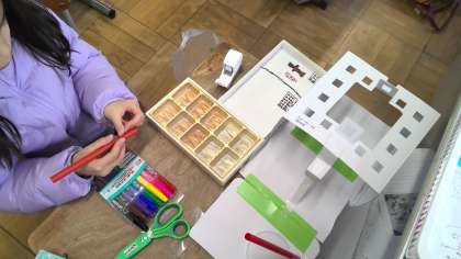 「どんな壁紙にしようかな」「まどの形を丸にしよう」などたくさんの工夫をつめこんで作っていました。