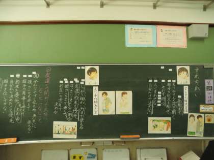 道徳の時間は、「すれちがい」のお話を通して、友達同士の関わりについて考えました。