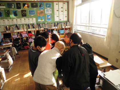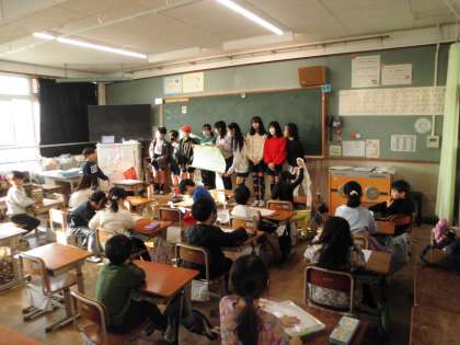 ただ渡すだけでなく、ぜひ読んでほしいという思いをしっかり伝えようと、教室に行く前にはグループごとに打合せをして各教室に移動していました。