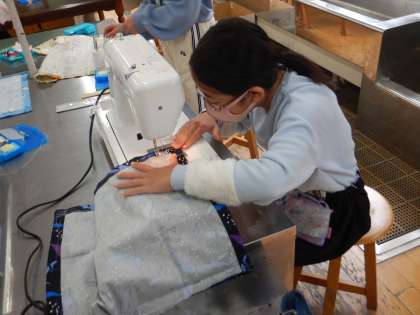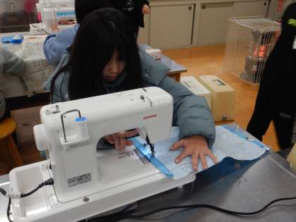 なかなか直線に縫うのは難しいようですが頑張っています。