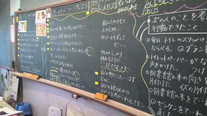 学習の初めには、「思いやり」がどのようなものか考えることが難しかった子どもたちも、授業を通して「思いやり」とは何かについて考えを深めることができたようです。自分の家族や友だちだけでなく、知らない人を含めた様々な人の気持ちを想像して行動できる「思いやり」のある子どもたちに育ってほしいなと思います。