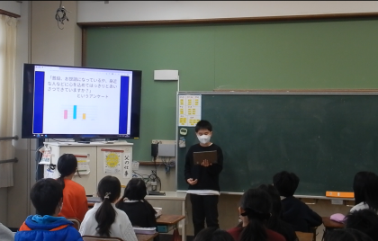 国語の学習では、みんなに提案したい事をまとめ、スピーチ発表を行っています。