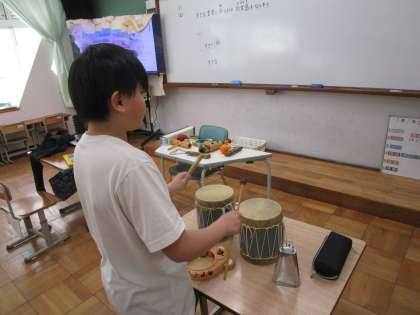 卒業式や6年生を送る会の曲などに合わせて、打楽器の演奏を行いました。