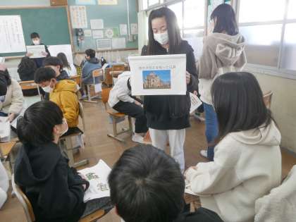 国語科「今、私は、ぼくは」の学習で「今自分が語りたいこと」をテーマに友達に向けて語りました。小学校生活での思い出、中学校に向けて、色々な考えが聞けました。