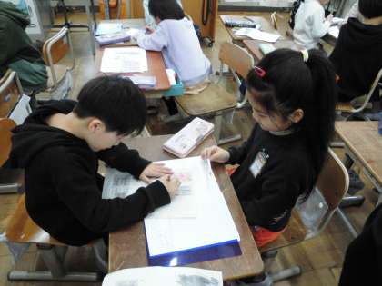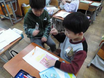ひろさを比べました。広さがどの部分を表すのかを確かめる必要がありましたが、これまでした長さとは違うことに「なるほど〜。」と言っている子が少なくなかったです。比べ方を話し合って、同じ大きさのマス目で比べられることをみんなで確認しました。以前に長さ比べでもあったことを振り返り、「そういえばしたなぁ。」と教科書を見て言い合っていました。
