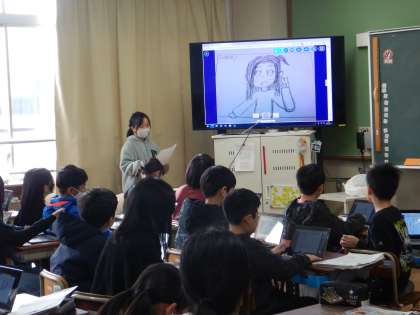 外国語の学習では、学んだ文法を使って「My hero is…」発表会を行っています。