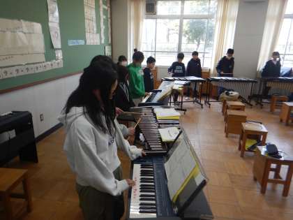 自分で作曲したパートを楽器で奏でながら、合奏を行いました。