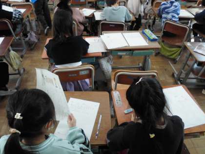 自分の思い出を3つの段落に分けて書き、1年のよいことを思い出しながらこれまでの学習を生かして書きました。そのあと、みんなと交流をし、友達の良いことを知ったり、感じ方や書きぶりのよさを見つけ合いました。子どもたちは、交流の時間が大好きです。
