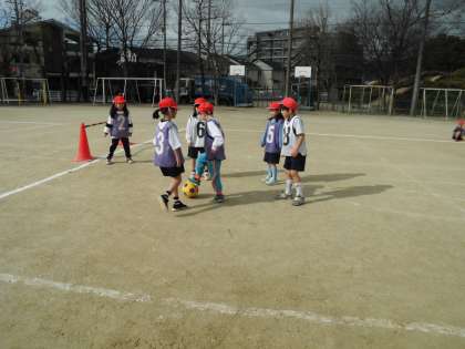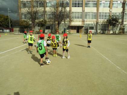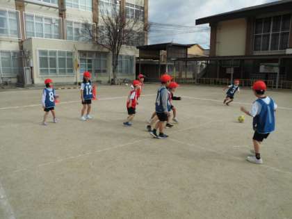 ボール蹴りゲーム、楽しみにしている子が多いです。誰が出るかを平等に決めて準備や後片付けも責任をもってする。2年生につなげてほしいと思います。タイマーを使って自分たちでゲームの進行をする練習もしています。