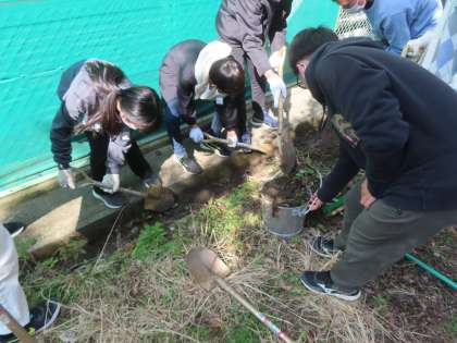 長年の土がたまった排水溝もきれいにしてくれました。出てきた土を何度も往復して捨てることで、見違えるようなきれいな排水溝に!!