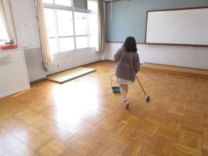 持って帰るものと不必要な物に分けた後、雑巾がけをして床がピカピカになりました。