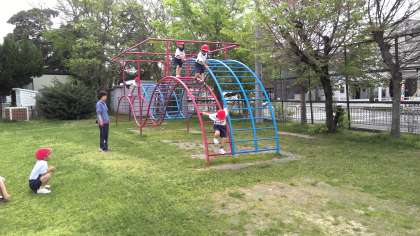 体育では、遊具を使ったり、芝生を走り回ったりしてたくさん体を動かしました。遊具を使えた子どもたちは、とても嬉しそうな様子でした。安全に気をつけながら学習を進めていきたいと思っています。