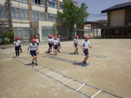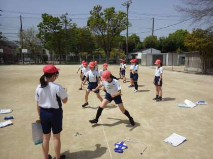 体の柔らかさを調べたり、いろいろな動きをする力を確かめたりしながらまずは自分の体力の状態を知りました。