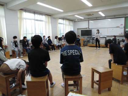 最初の音楽の授業では,体を動かしながら音楽を楽しんでいました。